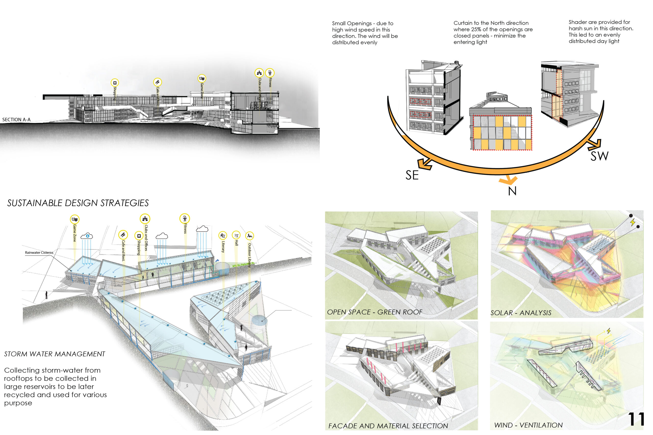 The spaces create interactive court yards and pocket spaces. Every programs is integrated with their compatible programs and provided with a single door to minimize the cost for each entrance. The space is organized based on the family members hierarchy and privacy in addition to…